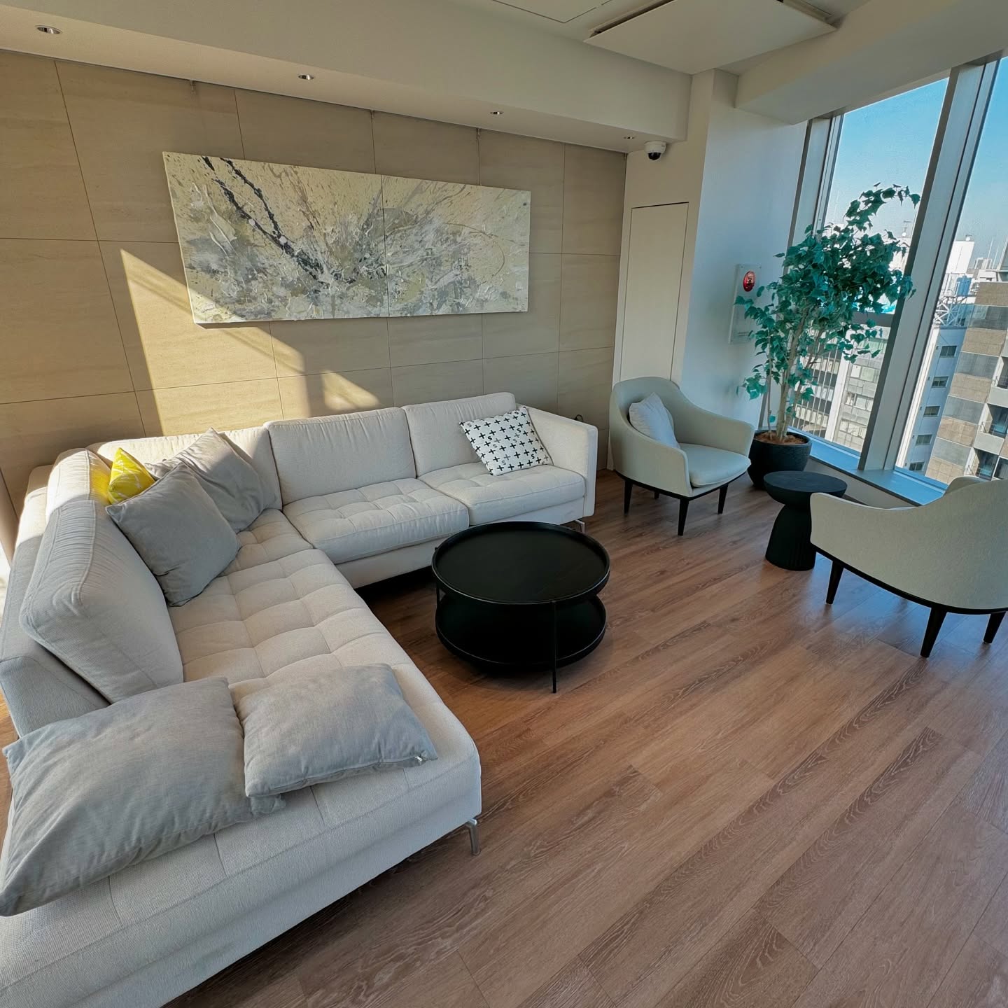 ゆったりと過ごせる大きなソファーがあるロビーで快適にお待ちいただけます。また、ビルに隣接する道路に路上駐車可能です。(パーキング・メーター式)